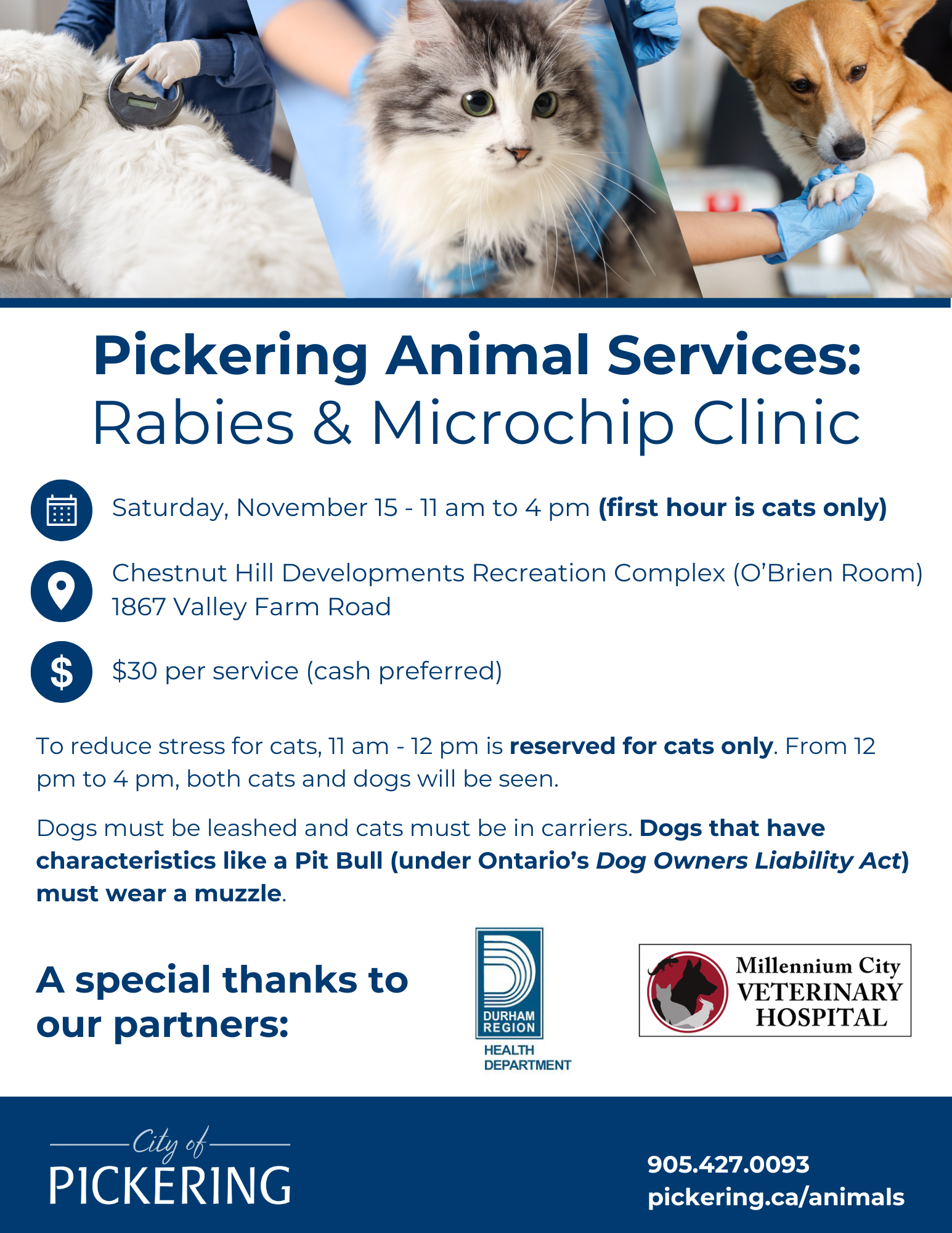 Thank you to the Durham Region Health Department and our participating Veterinary Clinic Millennium City